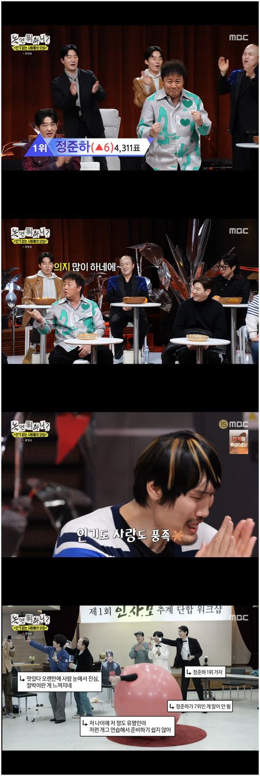이에 귤을 오물오물 먹던 현봉식은 단숨에 시선을 받았다. 주우재는 “하하 추구미가 현봉식이다”라고 말했고, 하하는 “맞다. 저게 내가 원하는 하하 유니버스다. 자기는 아무것도 안 하는데 주변에 인기가 많고, 남들에게 인기가 많은 사람, 그걸 원한다”라고 말해 시선을 끌었다. 실제로 현봉식은 인기 순위가 올라 유재석의 눈썰미를 입증했다.