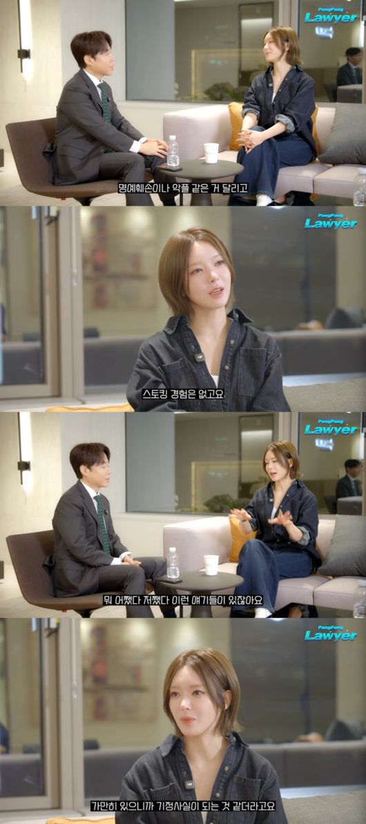 이날 김태형 변호사는 초아를 초대해 이야기를 나누며 “명예훼손이나 악플 같은 거 달리고 스토킹에 시달리는 그런 친구들 너무 많이 봤다. 혹시 그런 경험 있으세요?”라고 물었다.