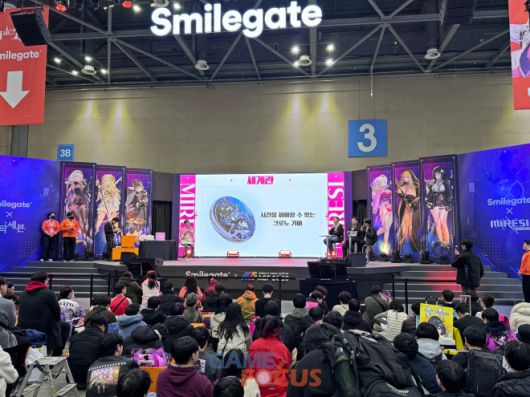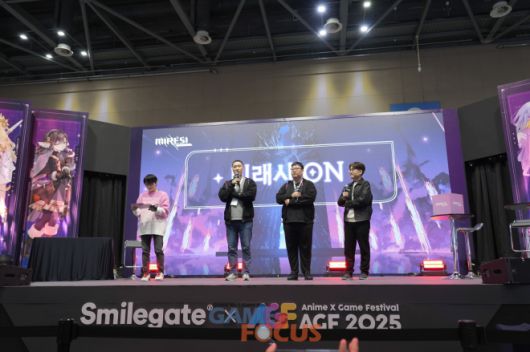 스마일게이트가 5일 일산 킨텍스 제1전시장에서 열린 ‘AGF 2025’ 현장에서 신작 서브컬처 수집형 RPG '미래시: 보이지 않는 미래(이하 미래시)'의 정보를 소개하는 무대 행사 ‘미래시 ON’을 진행했다.