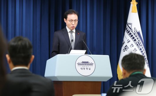 (서울=뉴스1) 허경 기자 = 이규연 홍보소통수석이 7일 서울 용산 대통령실 청사에서 신임 감사원장 후보자를 발표하고 있다. 2025.12.7/뉴스1neohk@news1.krCopyright ⓒ 뉴스1. All rights reserved. 무단 전재 및 재배포, AI학습 이용 금지.