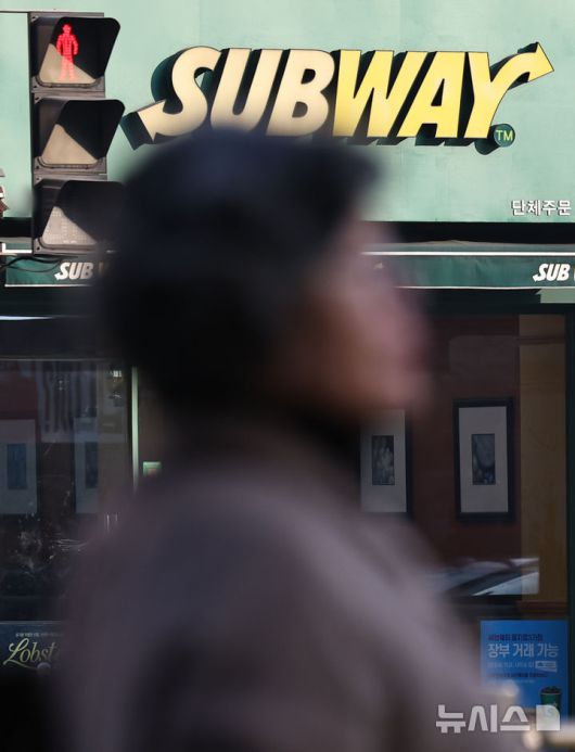 [서울=뉴시스] 최진석 기자 = 프랜차이즈 써브웨이(Subway)의 최근 사은품으로 지급된 '랍스터 접시'에서 1군 발암물질로 알려진 중금속 카드뮴이 기준치를 초과해 검출, 전량 회수 조치가 진행되고 있는 7일 서울 한 써브웨이 매장 앞을 시민이 지나가고 있다.