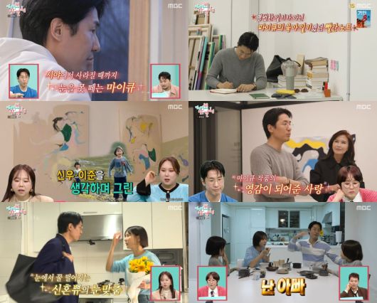 먼저 김나영과 결혼 2개월 차를 맞은 마이큐의 캠페인 영상급 신혼 일상이 시선을 사로잡았다. 아침부터 분주한 마이큐는 초코볼과 요거트를 예쁘게 세팅해 두 아들의 아침을 차렸다. 이후 이등병이 병장 깨우듯 섬세하게 아이들을 깨우고, 식탁까지 안아 옮기는 ‘큐큐오택시’ 모드로 스윗 대디의 매력을 발산했다. 결혼 후 자연스럽게 “아빠”가 된 순간의 벅차올랐던 감정은 아직도 설명하기 어렵다는 그였지만, 아이들에겐 이미 조곤조곤 다정한 ‘미술계의 션이자 최수종’이었다. “Follow your heart, 너흰 세상의 빛”이라는 아침 구호로 아이들을 배웅한 마이큐는 창밖으로 두 아이의 뒷모습이 완전히 사라질 때까지 행복 가득한 눈빛으로 창문 앞을 떠나지 않았다.