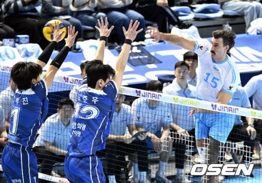 [OSEN=인천, 이대선 기자] 7일 오후 인천 계양체육관에서 프로배구 진에어 2025~26 V리그 대한항공과 삼성화재의 경기가 열렸다. 승점 28점(10승 1패)으로 선두를 달리는 대한항공과 승점 7점(2승 10패)으로 최하위에 머문 삼성화재의 대결이다. 1세트 대한항공 러셀이 공격을 시도하고 있다. 2025.12.07 /sunday@osen.co.kr