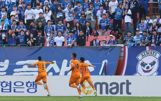 경기가 잠시 일시 중지됐다. 원정석 부근에서 한 팬이 쓰러진 것. 이에 급하게 의료진과 구급차가 투입됐다. 해당 팬은 과호흡 증세를 보이며 쓰러진 것으로 파악됐다. 관중석 바로 앞에 있던 김동준 골키퍼가 이를 알아차렸고, 빠르게 경기 중단을 요청하면서 응급 조치에 나섰다. 약 5분 뒤 경기는 재개됐다.