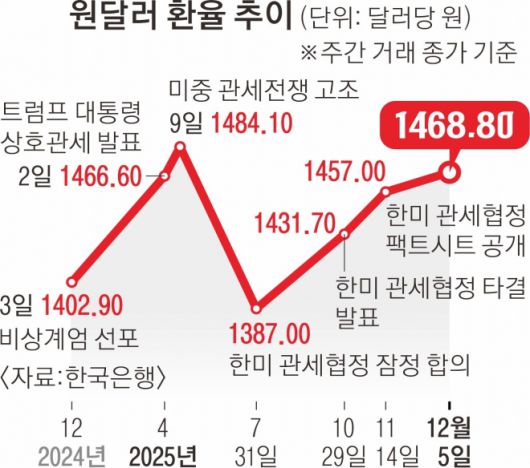 미국이 금리를 낮추면 달러 가치가 떨어지고 외국인 자금 이탈 우려가 줄어 환율이 안정될 것이란 전망이 있는 반면, 미국 증시가 강세를 보이면 국내 투자자들의 해외 주식 매수가 더 늘어 환율이 다시 오를 수 있다는 반론도 나온다. 오는 19일 예정된 일본은행의 금리 인상 여부도 변수다. 일본이 금리를 올리면 엔화 가치가 강해지고, 엔화와 움직임이 비슷한 원화도 함께 강세를 보일 수 있다.