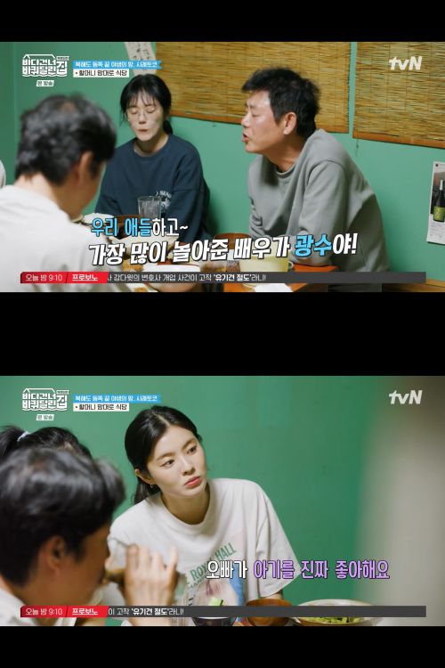 이날 방송에서 성동일은 “우리 애들하고 가장 많이 놀아준 배우가 광수다”라며 이광수의 ‘아이 사랑’ 일화를 꺼냈다. 이에 이선빈은 “오빠가 애기를 정말 좋아해요”라며 미소를 보였다.