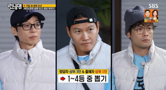 1등은 유재석, 이어 2등 허경환, 3등 김종국, 4등 최다니엘이 차례로 당첨되며 고급 방을 확보했다.