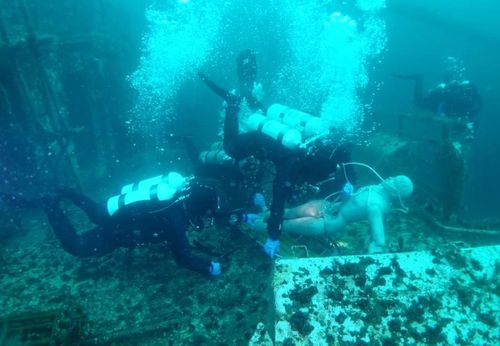 수중 인명 구조 훈련하는 소방대원들 |