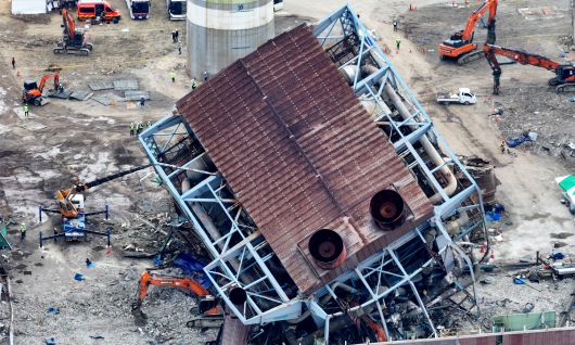 지난 11월 12일 울산화력발전소 보일러타워 5호기 주변으로 중장비를 동원한 매몰자 수색 작업이 진행되고 있다. 연합뉴스 |