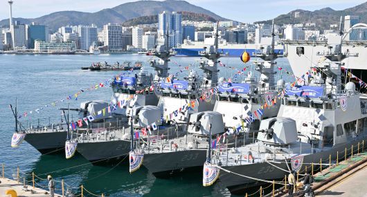 해군과 방위사업청은 오늘(8일) 부산 HJ중공업에서 연안 방어에 최적화된 전투 능력을 갖춘 230톤급 신형 고속정(PKMR) Batch-Ⅱ '참수리-231·232·233·235호정' 통합 진수식을 거행했다고 밝혔습니다.