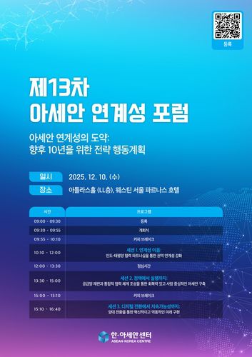 '아세안 연계성의 도약: 향후 10년을 위한 전략 행동계획'을 주제로 한 행사는 올해 채택된 '아세안 연계성 전략계획 2026∼2035'의 주요 내용을 검토하고, 이를 토대로 한-아세안 협력 추진 방향을 논의하기 위해 마련됐다.