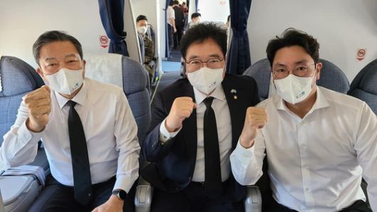 사진 왼쪽부터 황기철 국가보훈처장, 우원식 더불어민주당 의원, 배우 조진웅. 우원식 의원 페이스북 캡처 |