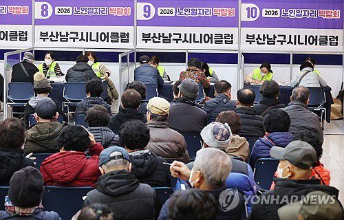 (부산=연합뉴스) 강선배 기자 = 8일 오전 부산 남구청에서 열린 '부산 남구 2026 노인 일자리 박람회'에서 구직을 희망하는 어르신들이 대강당에서 상담을 기다리고 있디.
