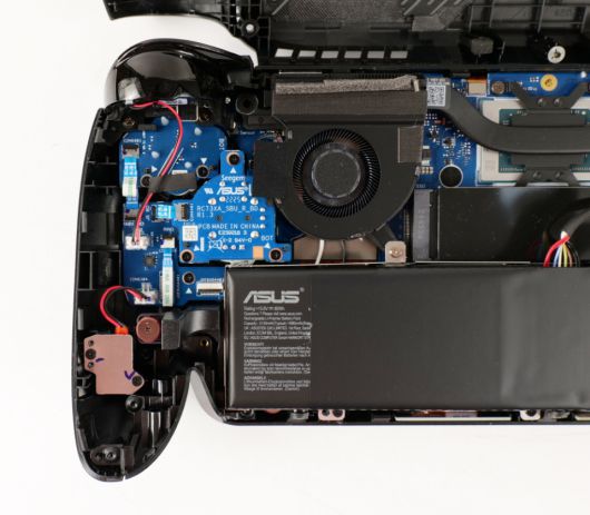 새로운 프로세서인 AMD 라이젠 AI Z2 Extreme이 탑재됐다. 발열을 빠르게 없애기 위해 큰 히트파이프와 듀얼 쿨링팬이 적용됐다. 아래에는 M.2 2080 SSD 슬롯이 있다. |