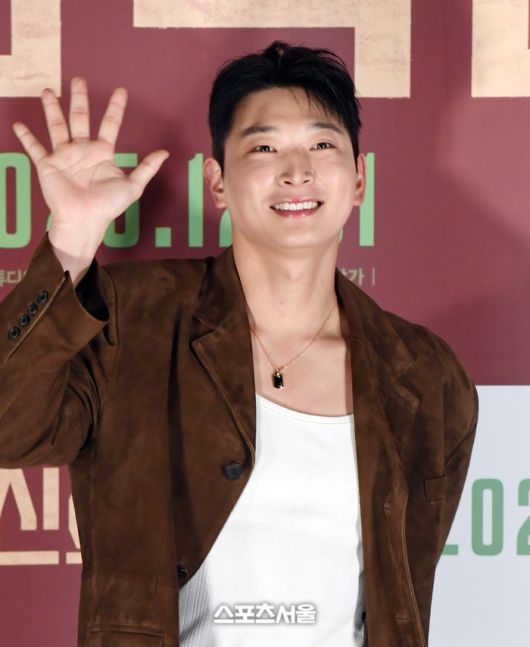 배우 정진운이 8일 서울 용산구 CGV 아이파크몰에서 진행된 영화 ‘신의 악단’ 제작보고회에서 취재진을 향해 포즈를 취하고 있다.