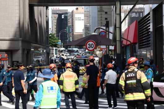 지난 8월 5일 오후 '신세계백화점을 폭파한다'는 글이 인터넷에 올라와 경찰 및 소방 관계자들이 전국 주요 지점을 수색했다. 당시 서울 중구 신세계백화점 본점에 출동한 경찰 및 소방 관계자들이 현장을 통제하는 모습. 뉴스1 |