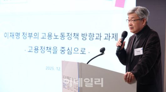 [이데일리 이영훈 기자] 이재갑 전 고용노동부 장관(수원대 석좌교수)이 8일 오후 서울 중구 통일로 KG하모니홀에서 열린 '제3회 좋은 일자리 포럼'에서 '이재명 정부의 고용노동정책 방향과 과제-고용정책을 중심으로' 주제로 발제를 하고 있다.