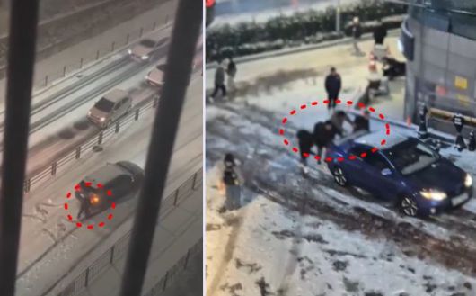 도로 곳곳에서 멈춰선 차량 밀어준 사람들 '훈훈한 온라인 뒷담화'