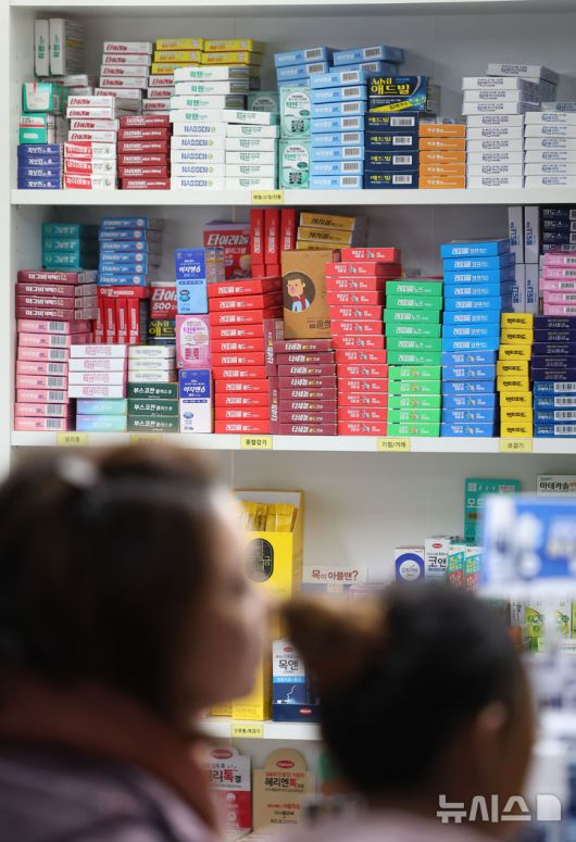 [서울=뉴시스] 김선웅 기자 = 급격한 기온 하락으로 감기 증상을 호소하는 환자가 늘면서 약국에서 간편하게 구입할 수 있는 다양한 감기약의 판매가 증가하고 있다. 또한 올해 인플루엔자(독감)가 예년보다 빠르게 확산해 제약업계의 연령·증상별 세분화 제품 출시도 이어지고 있다. 8일 서울 소재 약국에서 다양한 종류의 감기약이 판매되고 있다. 2025.12.08. mangusta@newsis.com