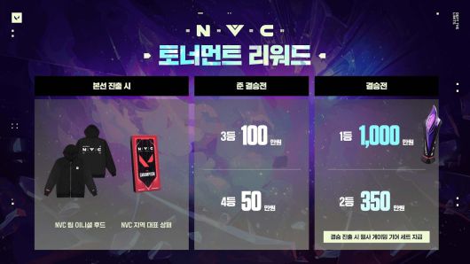 라이엇 게임즈는 NVC 참가자 전원에게 다양한 보상을 제공할 예정이다. 대회 참가 신청 후 한 경기만 소화해도 보상을 제공하며 상위 라운드로 올라갈수록 더 많은 보상을 얻을 수 있도록 기획됐다.