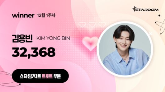 한편 김용빈은 12월 1주차 '스타덤 차트' 음원 부문에서는 '어제도 너였고 오늘도 너여서'로 1위를 기록하면서 11주 연속 정상을 지켰다. 배우 부문 주간랭킹에서는 김수현이 8주 연속 1위에 올랐다. 아이돌 부문에서는 피프티피프티가 7주 연속 정상에 올랐다.