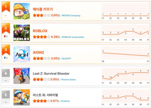 전반적으로 12월의 시작과 함께 상위권 경쟁은 더욱 치열해진 모습이다. 절대 강자로 자리 잡은 ‘메이플 키우기’의 독주가 언제까지 이어질지, 그리고 생존·전략 장르의 반격이 판도를 흔들 수 있을지 다음 주 랭킹에도 관심이 집중되고 있다.
