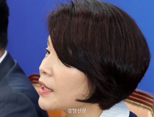 한정애 더불어민주당 정책위의장이 지난 10월23일 국회에서 열린 국감대책회의에서 발언하고 있다. 박민규 선임기자 |