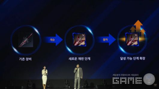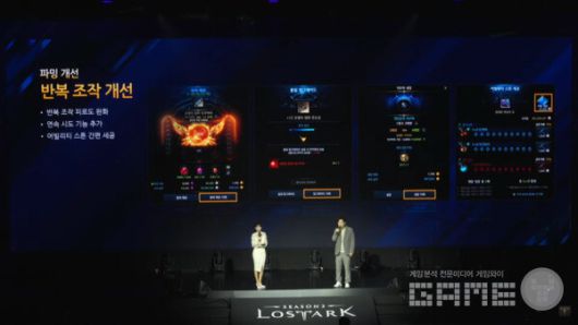 계승 장비는 제작 주차가 줄어들고 돌파 기능이 도입되어 20강에서 25강까지 확장할 수 있다. 파밍 개선 방향에 대해 전 디렉터는 "반복 조작 피로를 줄이기 위한 개편"이라고 밝히며, 어빌리티 스톤 자동 세공(AI 세공)과 에스더 무기–일반 무기 간 변환 기능을 공개했다.