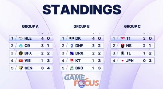 조별 리그 마지막 경기를 젠지와의 맞대결로 마무리한 한화생명e스포츠는 경기 내내 압도적인 무력을 선보이며 전승으로 조별 풀리그를 마무리했다. 반대로 젠지는 1군 팀 소속인 ‘기인’ 김기인 선수와 ‘듀로’ 주민규 선수가 분전하는 모습을 보였으나 정글, 미드, 원거리 딜러의 경험치 차이를 극복 못하고 결국 전패로 조별 풀 리그를 마무리했다.