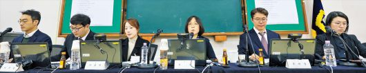 8일 오전 경기 고양 사법연수원에서 전국법관대표회의가 열렸다. 의장인 김예영(왼쪽에서 넷째) 서울남부지법 부장판사가 모두 발언을 하고 있다./박성원 기자 |