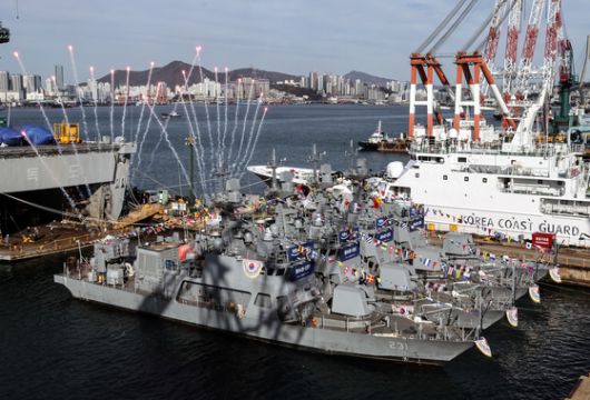 8일 부산 HJ중공업에서 신형 고속정(PKMR) Batch-Ⅱ ‘참수리-231·232·233·235호정’ 4척의 통합 진수식이 열렸다. 전자전 대응력이 강화된 신형 고속정은 내년 8월부터 11월까지 차례로 해군에 인도될 예정이다.