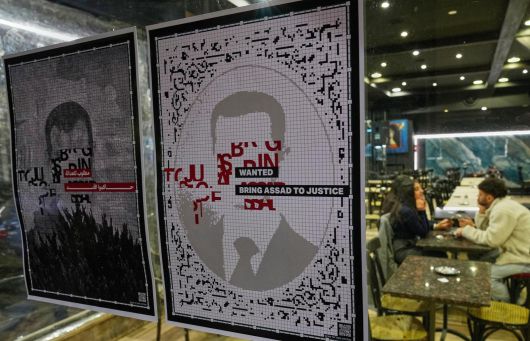 “아사드에 정의의 심판을” 바샤르 알 아사드 전 시리아 대통령이 독재자로 군림하던 시절의 범죄를 단죄하기 위한 국제사회의 특별재판소 설립을 요구하는 포스터가 7일 시리아 수도 다마스쿠스의 한 카페에 붙어 있다. 아사드 전 대통령은 지난해 12월 8일 14년간 이어진 내전 끝에 반군에 패했고, 러시아로 망명했다. 다마스쿠스=AP 뉴시스 |