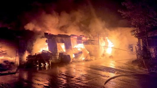 ▲ 8일 경기 파주시의 한 슬리퍼 제조공장에서 화재가 발생해 한 때 대응 1단계가 발령되었다.