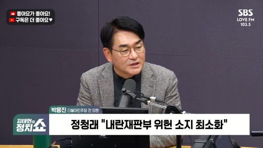 ▶박용진 : 네. 뭐 어쨌든 내란과 관련된 재판이 너무 길어지고, 또 이례적인 상황들이 계속 벌어지고 있고 하는 것들 때문에 국민적 불신이 있고요. 이를 해소하기 위한 노력의 일환으로 이 문제가 나왔기 때문에 방향은 공감하는데요. 그거 때문에 오히려 재판이 느려지거나 또 국민적 불신을 낳는 일이 벌어져서는 안 된다 이렇게 봅니다.