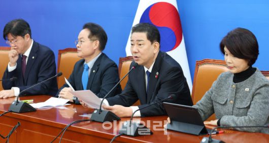 [이데일리 노진환 기자] 김병기 더불어민주당 원내대표가 9일 오전 서울 여의도 국회에서 열린 원내대책회의에서 모두발언을 하고 있다.