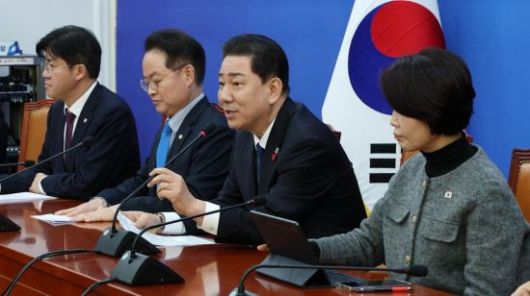 김병기 더불어민주당 원내대표가 9일 국회에서 열린 원내대책회의에서 발언하고 있다.
