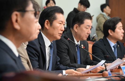 정청래 더불어민주당 대표가 8일 오전 서울 여의도 국회에서 열린 최고위원회의에서 모두발언하고 있다. 이상섭 기자 |