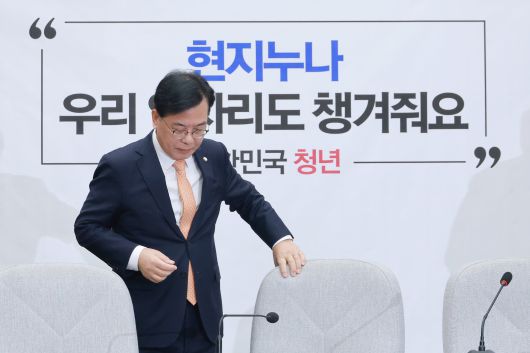 국민의힘 송언석 원내대표가 9일 국회에서 열린 원내대책회의에 참석하고 있다. /연합뉴스 |