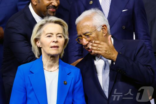 (요하네스버그 로이터=뉴스1) 강민경 기자 = 우르줄라 폰데어라이엔 유럽연합(EU) 집행위원장과 안토니우 코스타 유럽의회 상임의장이 11월 22일 남아프리카공화국 요하네스버그에서 열린 G20 정상회의 기념촬영 현장에서 대화하고 있다. 2025.11.22 ⓒ 로이터=뉴스1 Copyright ⓒ 뉴스1. All rights reserved. 무단 전재 및 재배포, AI학습 이용 금지.