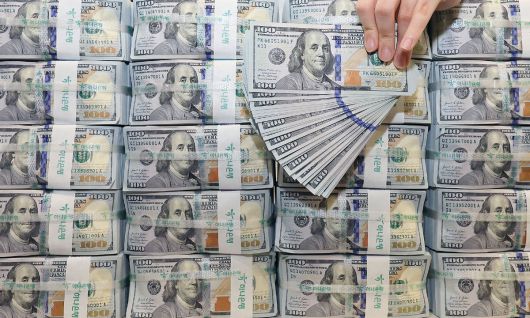 서울 중구 하나은행 위변조대응센터에서 은행 관계자가 달러화를 정리하는 모습. 뉴스1 |