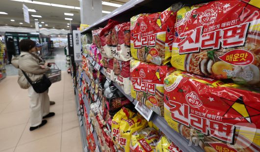 (서울=뉴스1) 김성진 기자 = 연말을 맞아 빵류와 가공식품을 중심으로 가격 상승세가 이어지면서 소비자 장바구니 부담이 커지고 있다. 9일 농림축산식품부에 따르면, 11월 국제 곡물 가격이 1.8% 상승하며 연말 가공식품 가격 부담을 높였다. 유엔 식량농업기구(FAO)가 발표한 11월 곡물 가격지수는 105.5포인트(p)로, 전월 103.6p에서 올랐다. 반면 세계식량지수는 같은 기간 1.2% 하락했다. 사진은 이날 서울 시내 한 대형마트에 라면이 진열돼 있다. 2025.12.9/뉴스1