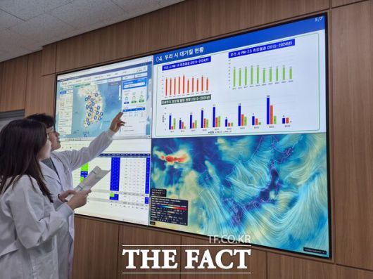 광주시 보건환경연구원 직원이 대기질 현황판을 확인하고 있다. /광주시 |