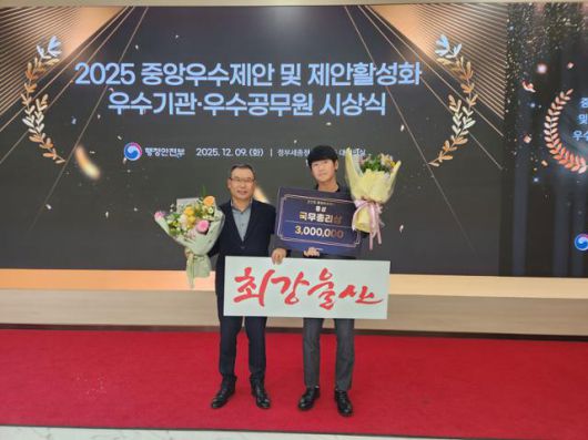 울산시는 9일 정부세종청사에서 열린 ‘2025년 중앙우수제안 시상식’에서 울산소방본부 소속 장기관·오대석 소방관이 공동 제안한 ‘소방호스 전개 소방차’가 공무원 제안 부문 국무총리상(동상)을 수상했다고 밝혔다. 중앙우수제안은 국민과 공무원의 창의적 아이디어를 바탕으로 행정 서비스 품질을 높이기 위해 행정안전부가 매년 선정·시상하는 제도다.