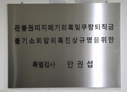 사진은 관봉권·쿠팡 의혹 진상규명을 위한 안권섭 특검 현판. /사진=뉴스1 |