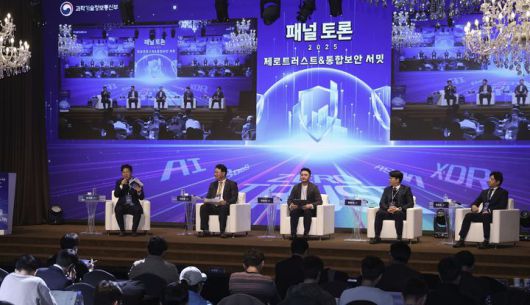 이어진 패널토론에서는 이석준 가천대 교수, 배환국 한국제로트러스트위원회(KOZETA) 의장, 이재용 국민은행 정보보호 최고책임자(CISO), 주진국 롯데월드 정보보호 최고책임자(CISO), 최영철 에스지에이(SGA)솔루션즈 대표 등 국내 보안 분야 수요·공급·학계 전문가들이 참여했다. 이들은 ▲경계 중심 보안의 한계 ▲데이터·사용자 검증 체계 전환 ▲인공지능 기반 위협 대응 자동화 ▲분산된 보안 환경의 통합 플랫폼 구축 필요성 등 다양한 주제를 논의했다.