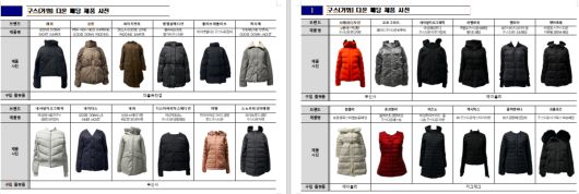 패션 플랫폼별로 보면 에이블리는 5개 제품 중 4개, 지그재그는 5개 제품 중 2개, 더블유컨셉은 6개 제품 중 1개가 거위털 비율이 부적합했다. 무신사 판매 제품 8개는 거위털 비율에 문제가 없었다.