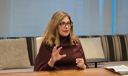 지난 달 25일 서울 영등포구 한국 IBM 사무실에서 만난 주히 맥클릴랜드 IBM컨설팅 아태지역(APAC) 사장이 기업 생존에 있어 인공지능(AI) 도입의 중요성에 대해 이야기하고 있다. IBM 제공 |
