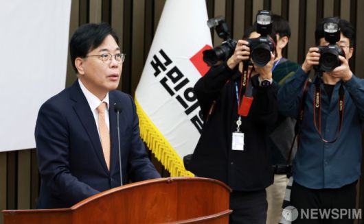 [서울=뉴스핌] 김학선 기자 = 송언석 국민의힘 원내대표가 9일 오후 서울 여의도 국회에서 열린 의원총회에서 발언을 하고 있다. 2025.12.09 yooksa@newspim.com
