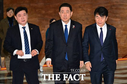 김병기 더불어민주당 원내대표(가운데)와 문진석 원내운영수석부대표(오른쪽)가 9일 오후 서울 여의도 국회에서 열린 비공개 의원총회에 참석하고 있다. /국회=남윤호 기자 |