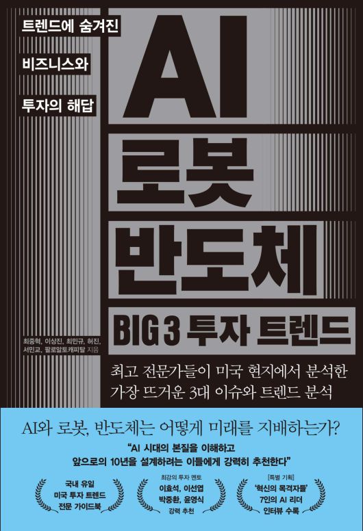 생성형 인공지능(AI) 열풍이 흔들어 놓은 글로벌 시장은 지금 ‘버블인가, 필연인가’라는 양극의 논쟁 속에 있다. 누군가는 닷컴버블의 재연을 경고하고, 또 다른 누군가는 이제 막 성장 초입에 들어선 혁신의 문을 보았다고 말한다. 신간 ‘AI 로봇 반도체 BIG3 투자 트렌드’는 이 소란스러운 논쟁을 넘어 AI·로봇·반도체가 하나로 얽히며 만들어내는 구조적 변화의 실체를 본격적으로 해부한다.